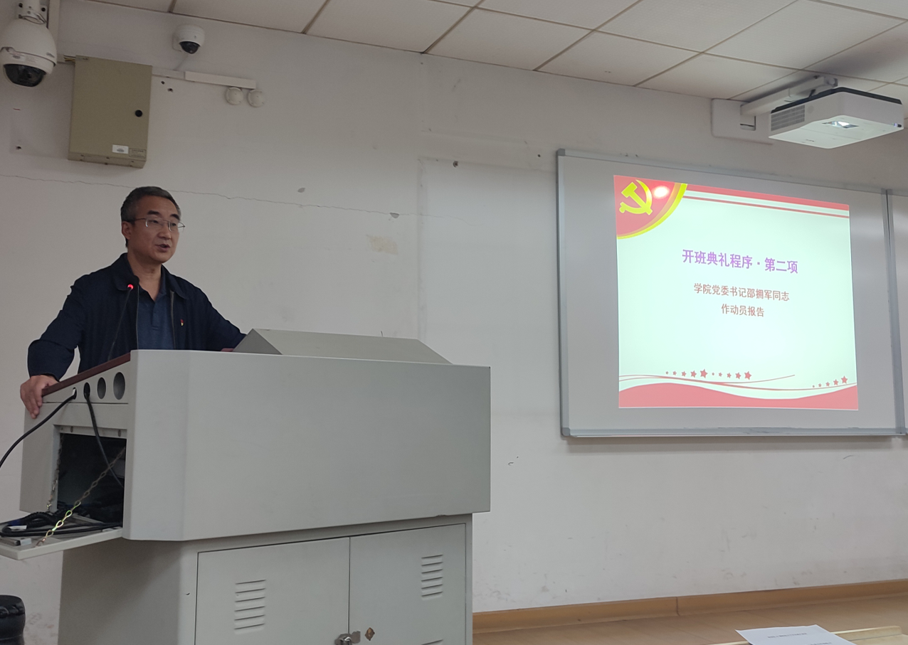 党委书记邵拥军老师上台给同学们作动员报告。在讲话中,邵拥军对参与积极分子培训班的同学表示了热烈的欢迎与祝贺。同时,他对培训班的学员们提出了几点期望和要求:希望参加培训的学员能在培训过程中认真学习,遵守纪律,严格要求自己;深刻感悟领会党的理论知识、端正入党动机,加强理论思考,提高政治素养,深化党性修养;养成良好的生活习惯与作息,拒绝惫懒;注重理论与实践结合,做实事,多参与志愿活动,以实际行动积极主动地向党组织靠拢。在最后,邵拥军预祝本次培训班取得圆满成功。