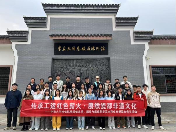 地理信息系本科生支部、测绘与遥感科学系本科生党支部前往醴陵市开展“传承工运红色薪火·赓续瓷都非遗文化”主题党日活动,引领党员同志传承红色基因,增强文化自信。