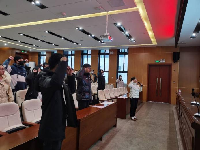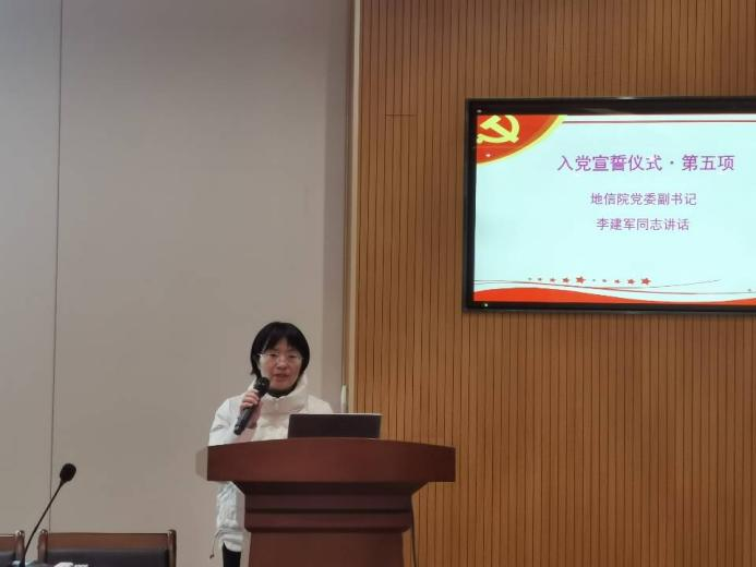 11月30日下午14:00,中南大学地信院分党校预备党员入党宣誓仪式在地科楼127报告厅顺利举行,地信院党委副书记李建军同志、地质资源系本科生支部书记杨晨雨同志、2022年新发展的预备党员参加宣誓仪式,会议由杨晨雨同志主持。