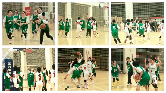比赛过程中,地信院女子篮球队身着绿色队服,精神饱满,士气高昂。参赛选手们默契配合,奋力拼抢,每一次精准的投篮、每一次精彩的防守都赢得现场一阵阵欢呼。