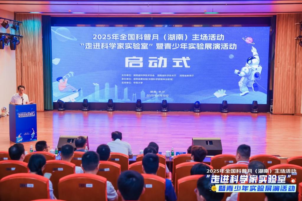 年全国科普月(湖南)主场活动——“走进科学家实验室”暨青少年实验展演活动启动式在中南大学毓秀楼和声堂举行。中国工程院院士、中南大学校长李建成,中国工程院院士、中南大学教授姜涛,与来自全省科协、科技、教育系统的