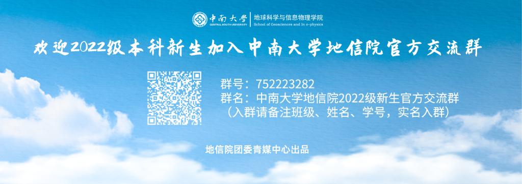 为更好帮助地信院2022级本科新生更早了解大学学习生活重要信息,特此建立中南大学地信院2022级新生官方交流群。具体信息如下: