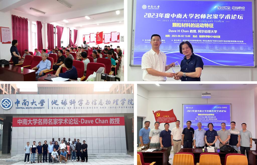 报告结束后,地质工程系主任孙平贺教授为Dave Chan教授颁发中南大学名师名家学术论坛纪念铭牌,对Dave Chan教授表示热烈欢迎与衷心感谢。会后,Dave Chan教授与参会师生代表及留学生参观了有色金属成矿预测与地质环境监测教育部重点实验室,对相关实验工作提出了指导。