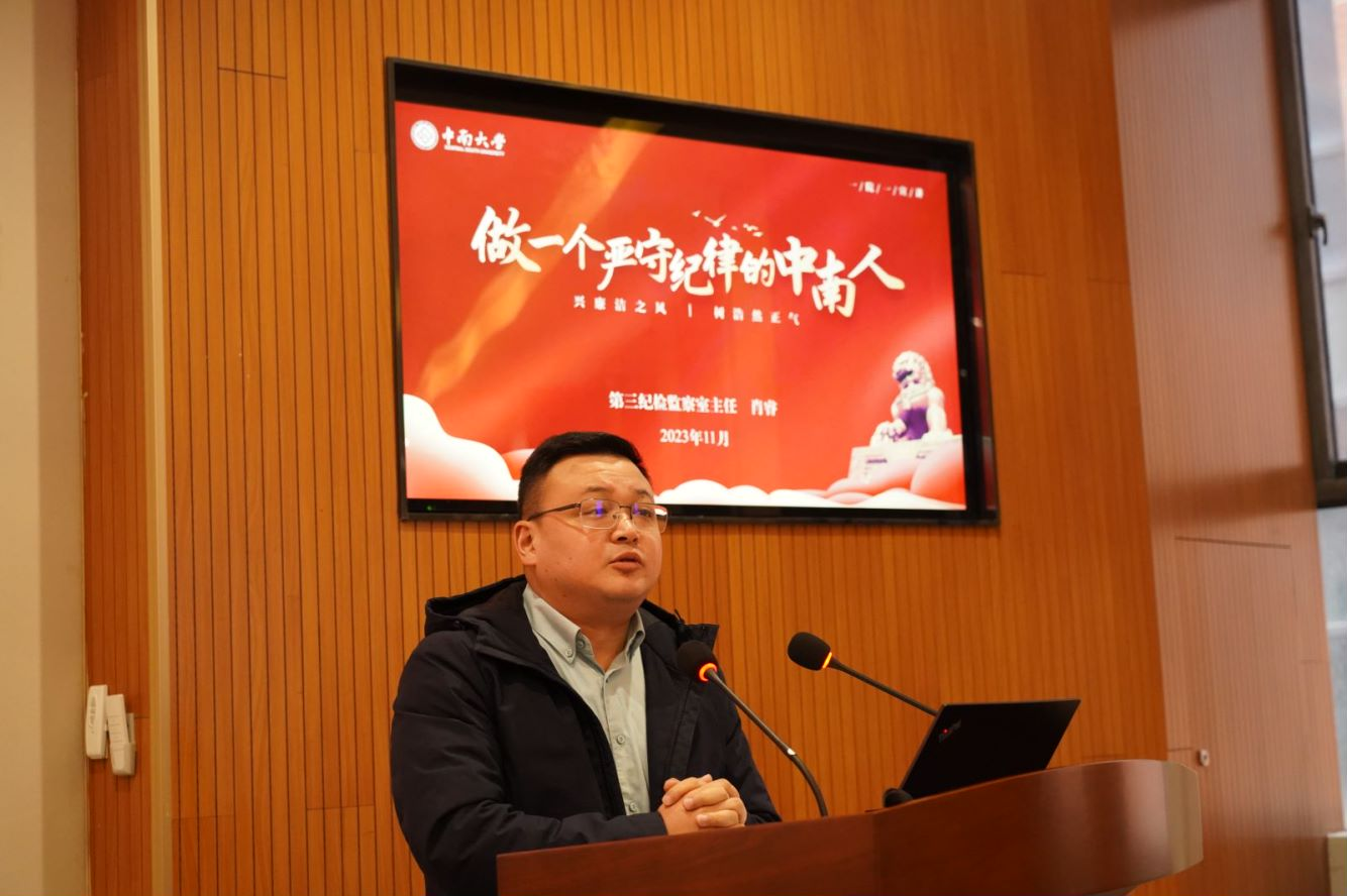 邀请了学校纪委第三监察室主任肖睿作题为“做一个严守纪律的中南人”的纪法宣讲和警示教育。博彩网站推荐