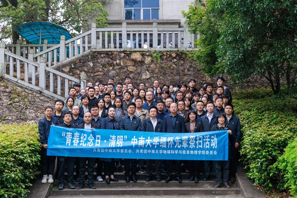 于校本部地学楼前举行“青春纪念日·清明”缅怀先辈祭扫活动。校团委副书记李飞、地信院院长李志伟、党委副书记刘浩、原院长戴塔根、原党委副书记李建军、地质资源系教工支部代表、地质资源系博士生支部和硕士生支部代表、博彩网站推荐