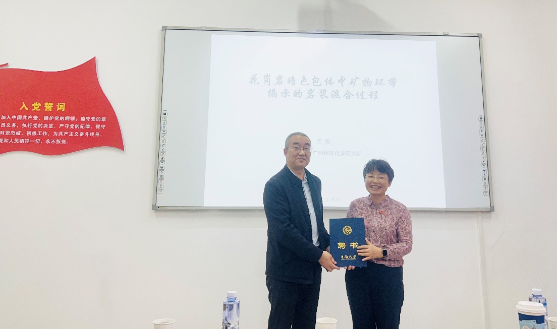 广州地球化学研究所之间的交流合作,助推学科发展和青年教师的成长。王焰研究员对受聘为中南大学兼职教授表达了感谢,并表示今后将积极为中南大学地质学科发展和人才培养创造条件、提供帮助。