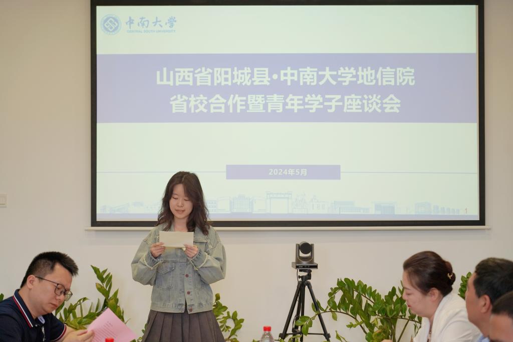5月17日,“山西省阳城县·中南大学地信院校地合作座谈会”在地科楼214顺利举行。院党委书记邵拥军、院长李志伟、院党委副书记刘浩,阳城县委常委组织部部长柴高原、阳城县委人才办主任茹敏燕等一行及学校科研部、资安院及地信院师生代表参加会议。会议由院党委副书记刘浩主持。