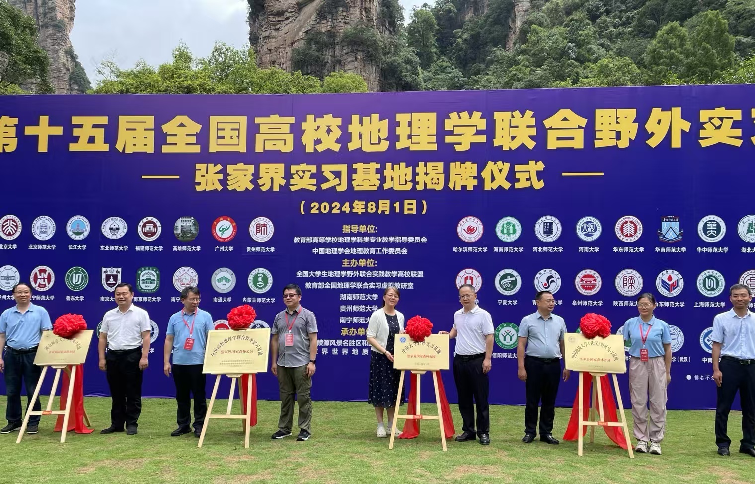 2024年8月1日,第15届全国高校地理学联合野外实习—张家界实习基地在湖南张家界世界地质公园隆重揭牌。此次揭牌仪式标志着全国首个高校地理学联合野外实习基地的正式成立,中南大学作为重要参与单位之一,与多家机构和高校共同见证了揭牌仪式。