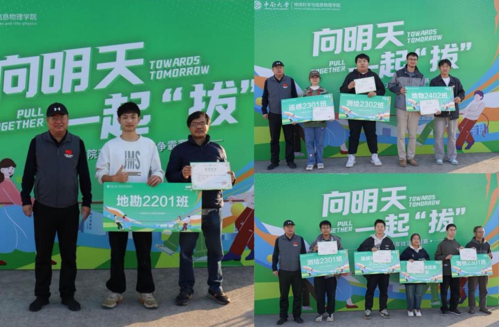 经过小组赛和淘汰赛的激烈角逐,最终地勘2201班摘得本次拔河争霸赛的桂冠,荣获一等奖。此外,遥感2301班、测绘2302班、地物2402班荣获二等奖,测绘2301班、地物2301班、遥测地2404班、遥测地2405班荣获三等奖。刘浩副书记为以上获奖班级颁发奖状。