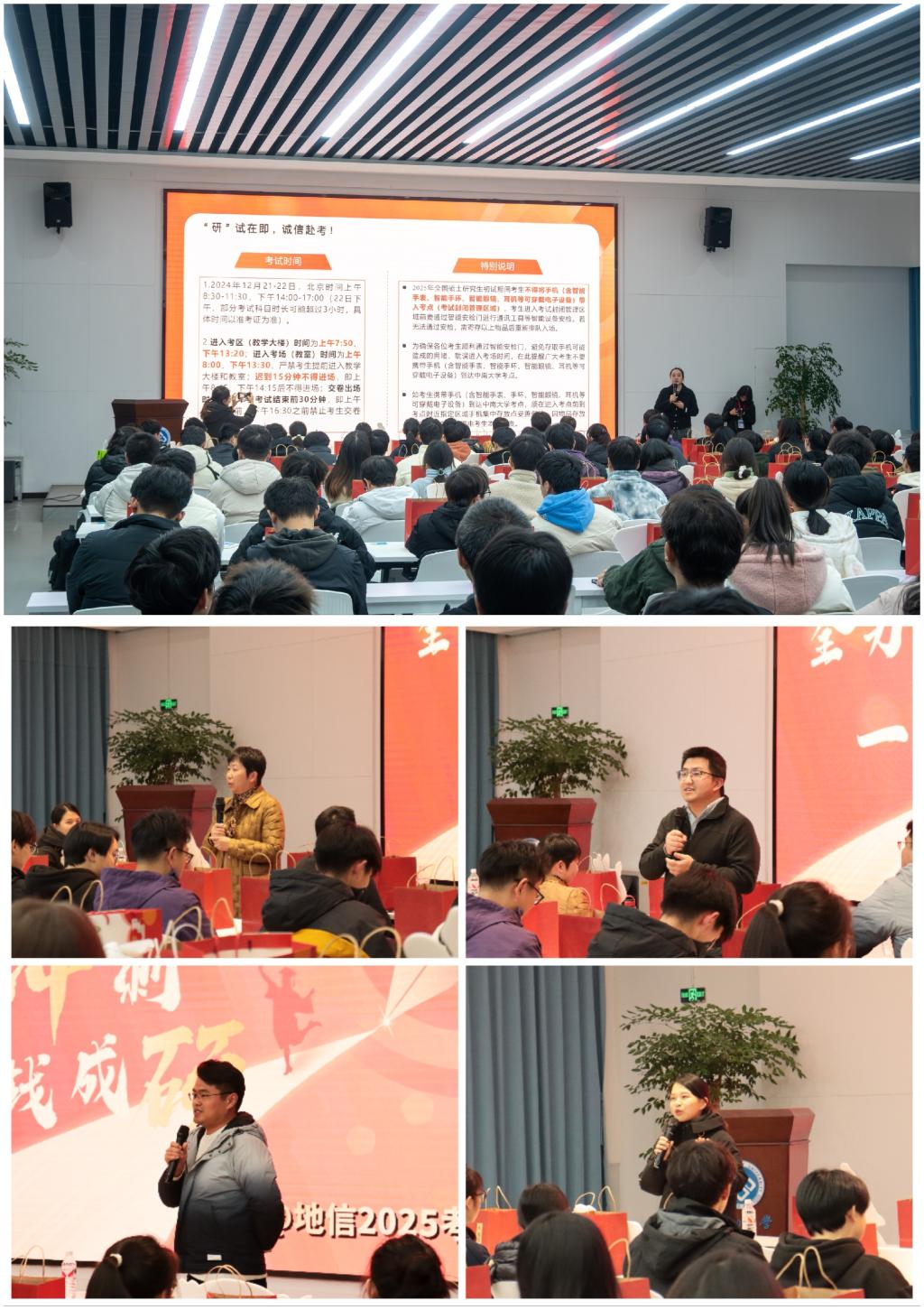 为帮助2025届考研学生缓解备考压力,坚定信心,12月16日晚,地信院2025届考研送温暖活动在中南大学本部立德厅顺利开展。本科2021级班导师赵玲、杨学习、熊伊曲及辅导员刘琦、张馨心出席,2021级全体考研学生和服务志愿者们参加活动。