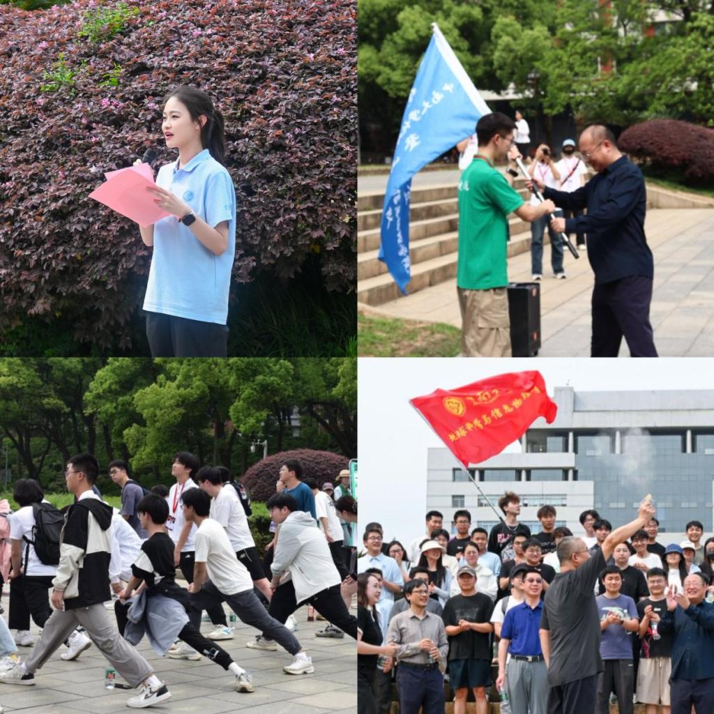 学生会体育部的带领下开展热身运动,为登山做足准备。热身完毕,全体师生一同合影,记录下这令人期待与振奋的时刻。最后,邵拥军书记持枪法令,宣布登山活动正式开始。师生们热情高涨,向岳麓山有序进发。至此,启动仪式圆满落幕,登山活动正式拉开帷幕。