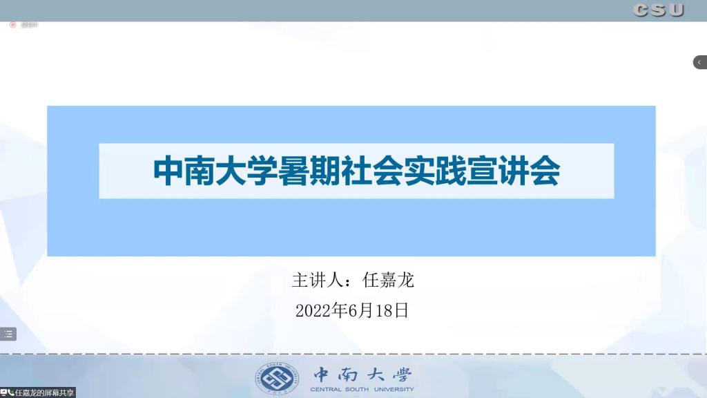 2022年暑期社会实践动员培训会于腾讯会议顺利开展。此次活动旨在为同学们梳理暑期社会实践的整体过程,帮助同学们更全面地了解项目申报书的撰写技巧,做好实践的宣传总结工作,力创优秀实践项目。活动邀请了有着丰富实践经验的校团委社会实践部副部长任嘉龙同学和校团委社会实践部宣传中心主任孙艳情同学两位主讲,共计70人参与线上培训活动。
