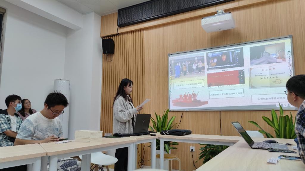 本次活动共有五名党员、三名入党积极分子报名参与风采展示。章湘粤、刘宁、赵乐、朱炫颖、李佳铃等党员同志,王书珽、吴小桐、陈萍等入党积极分子先后进行风采展示,展现自己在担任一个干部、对接一个班级、帮扶一位同学、宣讲一次理论、服务一次社会、开展一次交流、参与一个项目方面的实践与成就。几位同志纷纷表示,会在接下来的生活中继续积极实践,做有理想、有担当、能吃苦、肯奋斗的新时代好青年。