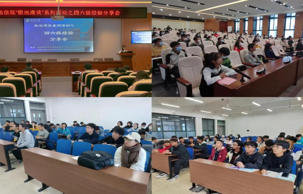 11月19日下午,由地信院学生会学习部主办的“极地漫谈”系列活动之四六级经验分享会于地科楼127报告厅成功举办,本次分享会采取线上线下相结合的方式开展,分会场设在新校区A座教室,22级全体本科生及其他年级部分本科生参与,分享会同步于博彩网站推荐