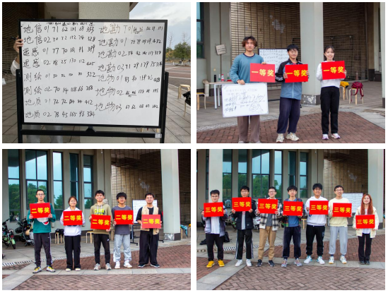 经过两个小时的激烈比拼,比赛赛程全部顺利完成。地勘2101班、地物2101班和地质2101班获得一等奖,遥感2101班、遥感2102班、地勘T2101班、地物2102班和地质2102班获得二等奖,地勘2102班、地勘2103班、地物2103班、地信2101班、地信2102班、测绘2101班和测绘2102班获得三等奖。