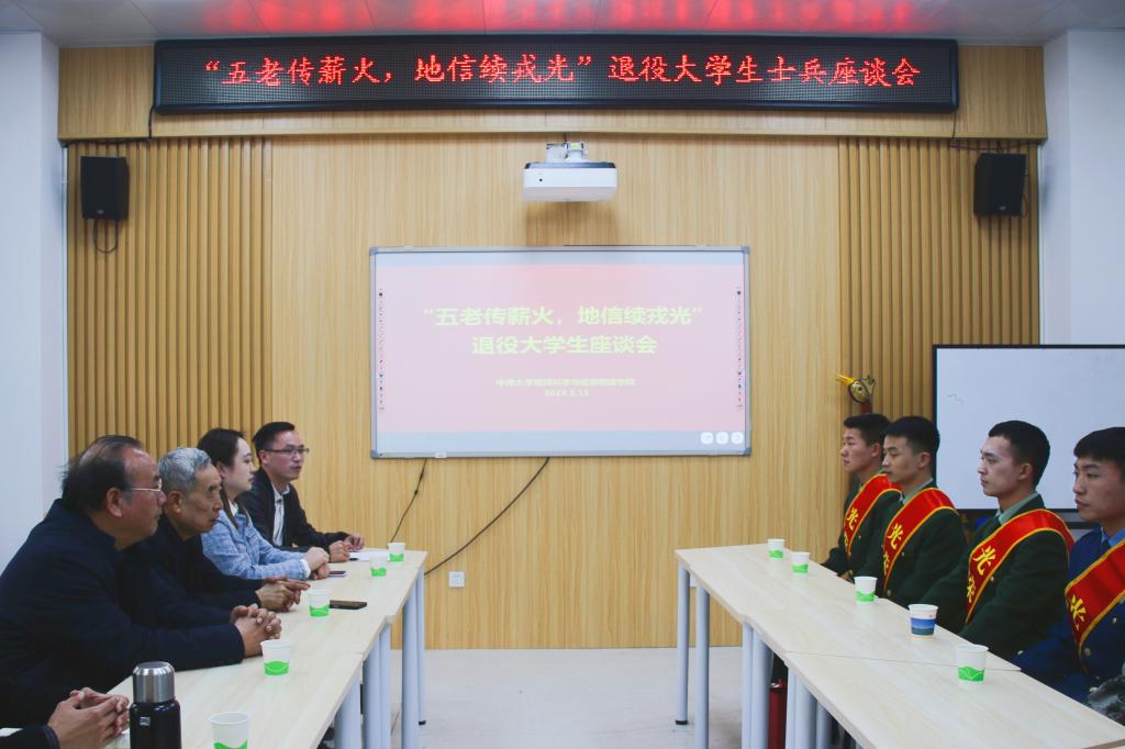 3月13日16:30,地信院“五老传薪火,地信续戎光” 2023年春季退役同学座谈会于新校区地科楼124会议室顺利开展。地信院党委副书记李建军,校关工委副主任唐建华,院关工委常务副主任胡祥昭,院团委书记刘琦,院22级辅导员刘凯,院关工委秘书杨晨雨出席会议。退伍大学生士兵黄锴、潘磊、师源、李中旭,入伍学生杨振远、王炳权参会。会议由博彩网站推荐