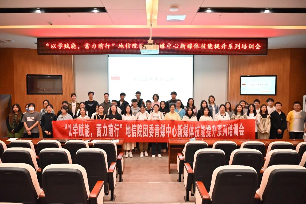 为进一步提升地信院青年传媒中心各部门的新媒体宣传运营技能,提高工作质量和效率,10月18日及20日晚9:10,地信院团委青媒中心于新校区地科楼127报告厅举行了“以学赋能,蓄力前行”新媒体技能提升系列培训会。会议由院团委学生副书记张庭桂、曹燕飞,院团委编辑部部长黄琤,院团委影音部部长欧馨潞讲解,院团委青年传媒中心全体成员参会。