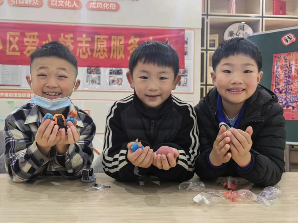 在手工互动环节,孩子们在志愿者何嘉同学的带领下,亲手制作地球圈层模型,用不同颜色的轻粘土模拟地球不同的圈层,通过叠加和造型,呈现出地球内部的立体结构。在此过程中,宣讲团不仅培养了孩子们对客观世界的兴趣,提升其科学素养,更鼓励他们在学习过程中主动动手,在实践中认识世界。
