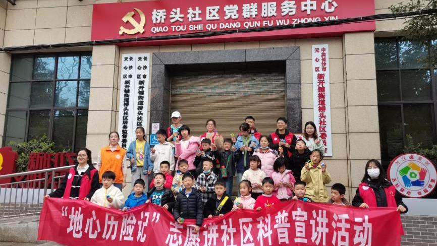 科普宣讲团赴湖南省长沙市天心区桥头社区党群服务中心,为孩子们带来了一场以“地心历险记”为主题的科普宣讲活动,以期提高孩子们的动手能力、创新意识以及科学态度。
