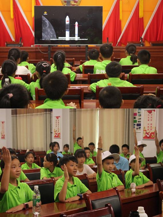 7月16日上午,实践团来到了调研地点黄沙镇中心小学,实践队员们为孩子们准备了一节别开生面的课堂。课堂上,队员们生动详细地讲述了科普知识,引起了孩子们极大的兴趣并积极参与同时提出自己的问题,队员们对此进行一一解答。孩子们收获了很多,队员们也感受到了孩子们的热情。