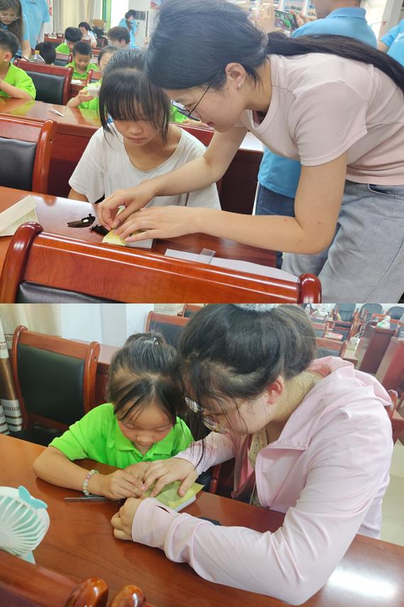 之后,实践团队员们带领孩子们制作蝴蝶标本,对于制作过程中的问题,队员们也耐心解答,一对一指导制作。通过亲身体验等活动,孩子们能够将所学知识应用到实践中,锻炼和提高实践能力。激发创新思维,在队员们的引导下,孩子们将学会从不同角度思考问题,培养创新思维和解决问题的能力。