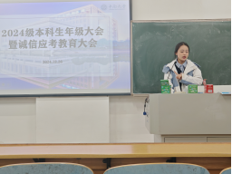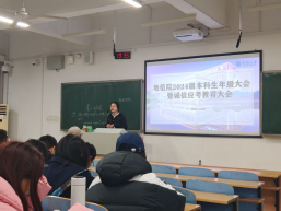 为强化学生的诚信意识,加强学风建设,营造公平、公正、诚信、文明的考试氛围,在期末考试来临之际,12月26日晚,地信院于新校区B座112和319教室,召开2024级本科生期末诚信应考教育大会,辅导员寇浚哲、王爽爽老师主持会议,博彩网站推荐