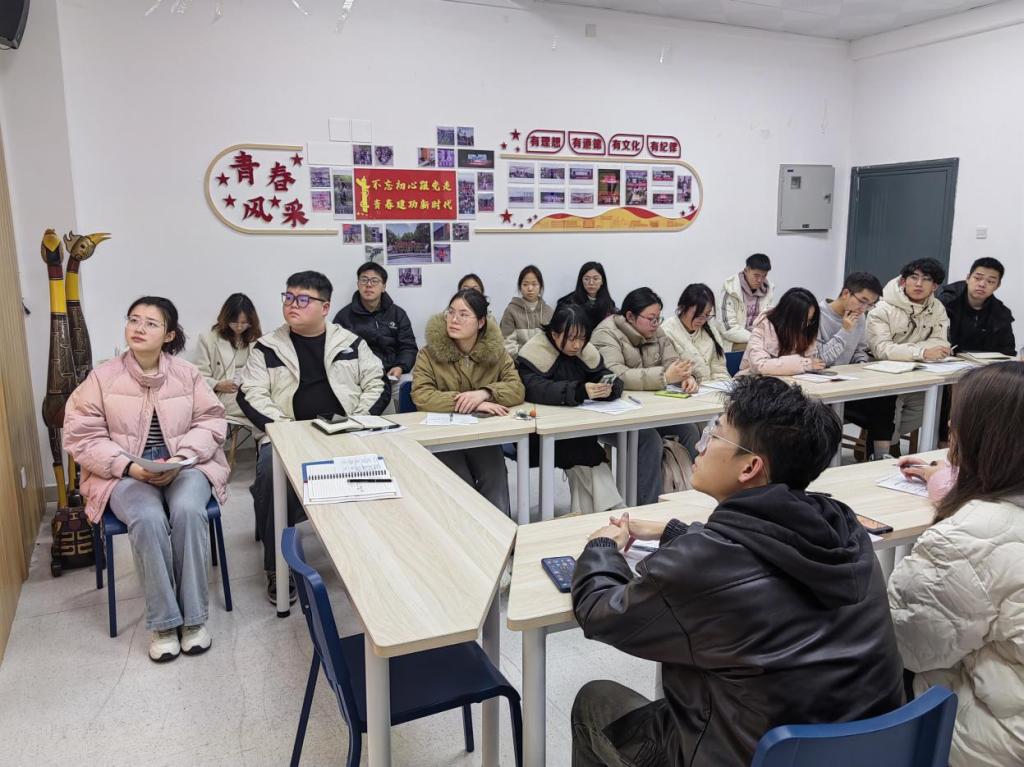 学生会临时团支部于地科楼124组织学习了2025年全国“两会”精神。会议由院学生会办公室尹语妍主持,团学会执行委员参会。