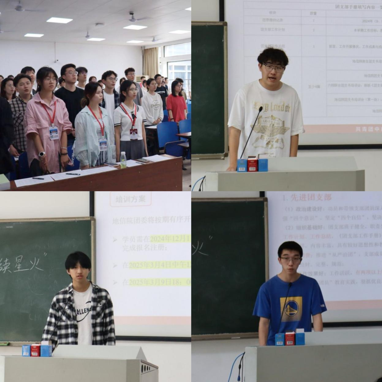 培训会伊始,全体奏唱国歌。培训正式开始,首先由院团委组织部刘焕东同学系统讲解团支部工作手册的填写规范和注意事项。随后,院团委组织部钟建勋同学详细解读了《地信院青马工程管理办法》的具体实施细则,并作团支书干部意识培训。紧接着,院团委组织部杨颜瑞同学对五四评优工作的评选标准、申报流程等进行了说明。培训会最后,全体与会人员齐唱团歌并合影留念。