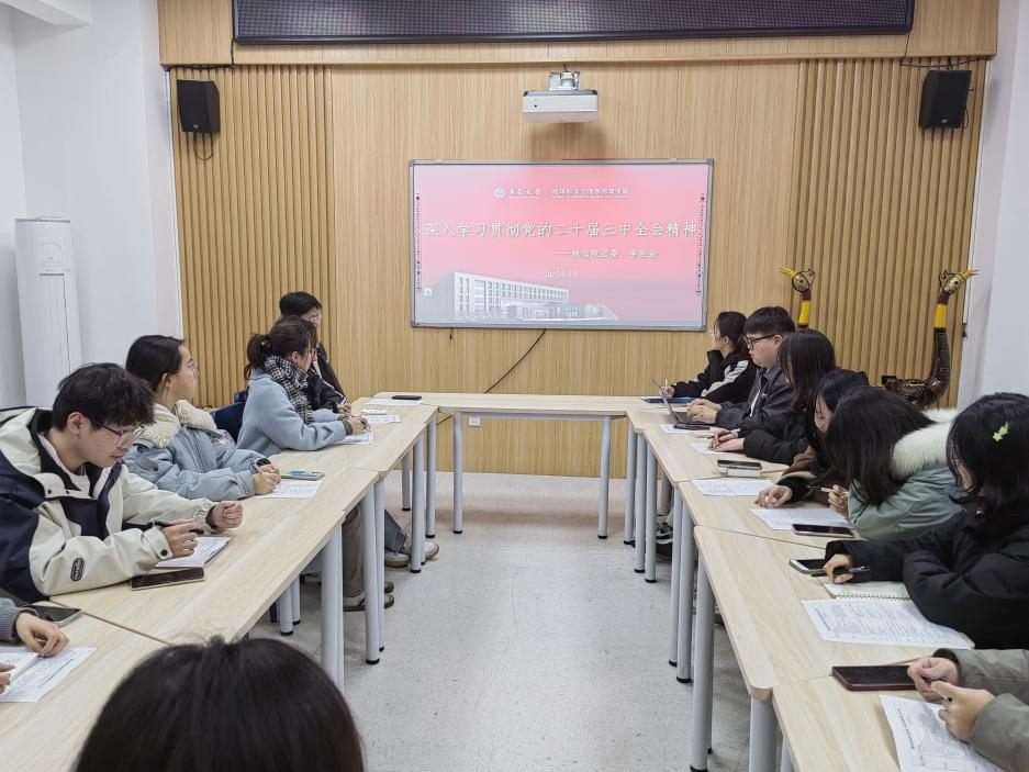 至此,本次党的二十届三中全会精神的理论学习圆满结束。希望通过此次学习,同学们可以将会上所学到的相关理论知识与实际结合起来,担负青年责任,为国家的全面深化改革贡献注入青春活力。