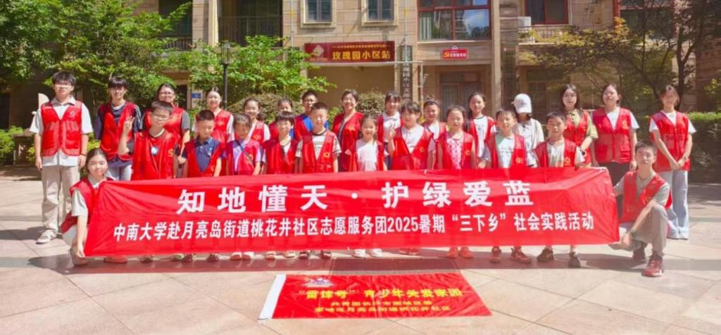 临时团支部赴长沙市望城区月亮岛街道桃花井社区,开展为期7天的“绿色科学营”共建活动,为40余名中小学生量身定制暑期地质与环保主题系列课程。该活动旨在丰富社区青少年假期教育资源,增强文化自信,探索学科交叉育人价值,彰显新时代高校青年的社会责任。
