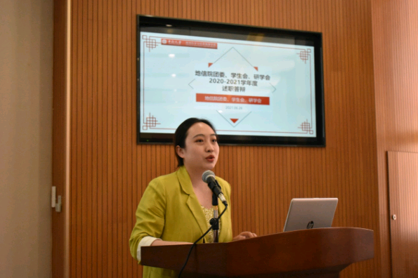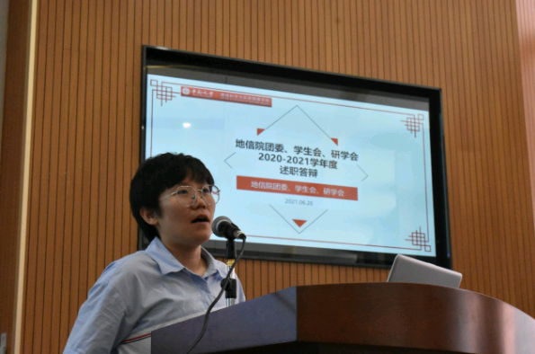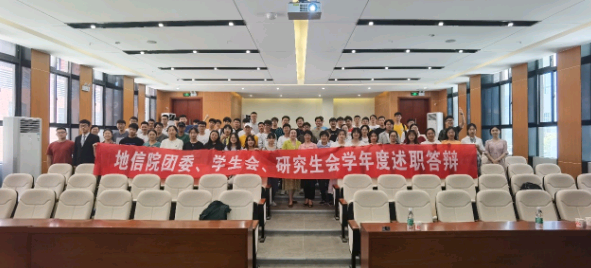 6月26日上午,地信院第十一届团委、学生会、研学会年度述职答辩于新校区地信楼报告厅举行。地信院党委副书记李建军、地信院研究生会指导老师田可、地信院团委书记刘琦出席本次活动。大会由地信院分团委学生副书记李易璋同学主持,地信院第十一届团委、学生会、研究生会全体成员参会。