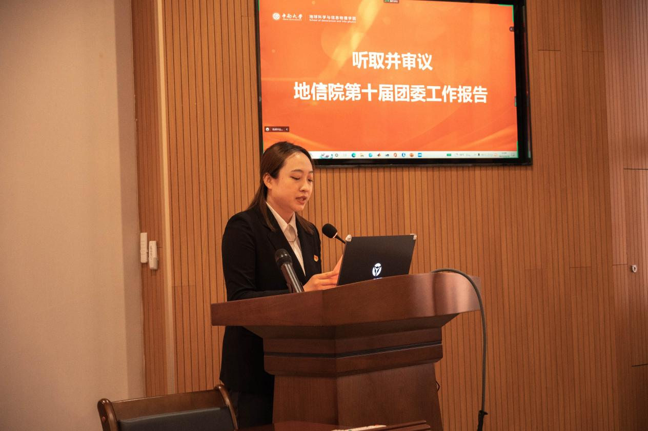 校团委副书记童卡娜,地信院党委书记邵拥军、党委副书记李建军,院团委书记刘琦,辅导员何可沁、刘凯、彭璐、杨通田和地信院学生代表等出席本次大会。本次大会由地信院研究生辅导员田可主持。