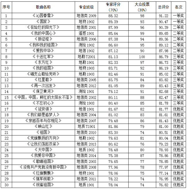于2021年6月,举办了“全心向党,红歌嘹亮”网络视听短视频大赛。经过各参赛班级的认真准备、作品上报、大众投票、专家评选,最终评选出2个一等奖班级、5个二等奖班级、9个三等奖班级、14个优胜奖班级,现将获奖名单公示如下: